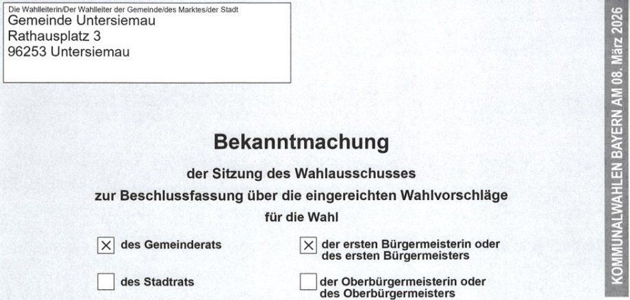 Bekanntmachung Einladung Wahlausschuss